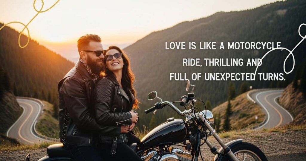 • A love quote for bikes expresses the passion and emotional connection a rider has with their motorcycle.