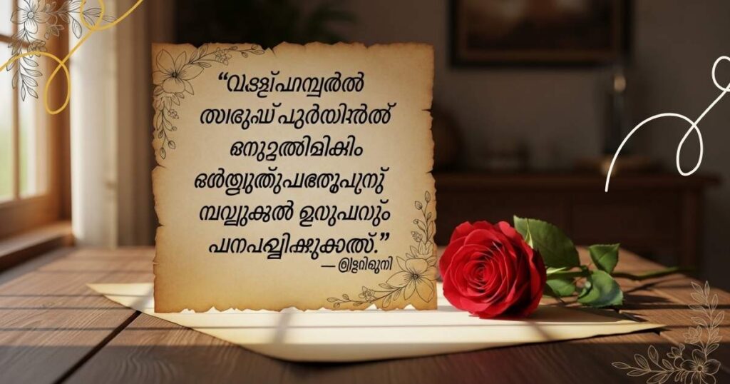 ഈ ലേഖനം നിങ്ങളെ love quotes malayalam എന്ന ലോകത്തിലേക്ക് നയിച്ചു, ഇവിടെ സ്നേഹവും വികാരങ്ങളും ബന്ധങ്ങളുടെ ആഴവും മനോഹരമായി അവതരിപ്പിച്ചിരിക്കുന്നു.